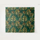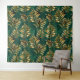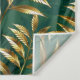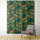 Seamless pattern of gold, jewelry, shiny fern branches and leaves on green, woodland, textured background. Golden fern.