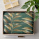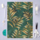 Seamless pattern of gold, jewelry, shiny fern branches and leaves on green, woodland, textured background. Golden fern.