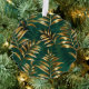 Seamless pattern of gold, jewelry, shiny fern branches and leaves on green, woodland, textured background. Golden fern.