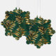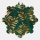 Seamless pattern of gold, jewelry, shiny fern branches and leaves on green, woodland, textured background. Golden fern.