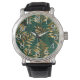 Seamless pattern with golden ferns watch