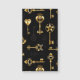 Seamless pattern of antique, gold and silhouette keys on black background.