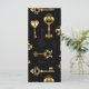 Seamless pattern of antique, gold and silhouette keys on black background.