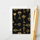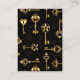 Seamless pattern of antique, gold and silhouette keys on black background.