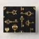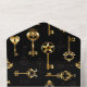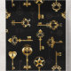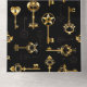 Seamless pattern of antique, gold and silhouette keys on black background.
