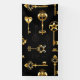 Seamless pattern of antique, gold and silhouette keys on black background.
