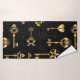 Seamless pattern of antique, gold and silhouette keys on black background.
