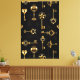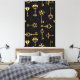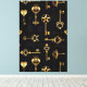 Seamless pattern of antique, gold and silhouette keys on black background.