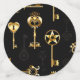 Seamless pattern of antique, gold and silhouette keys on black background.