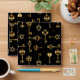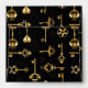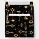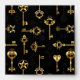 Seamless pattern of antique, gold and silhouette keys on black background.