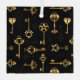 Seamless pattern of antique, gold and silhouette keys on black background.