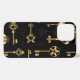 Seamless pattern of antique, gold and silhouette keys on black background.