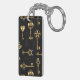 Seamless pattern of antique, gold and silhouette keys on black background.