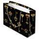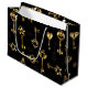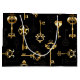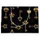 Seamless pattern of antique, gold and silhouette keys on black background.