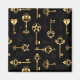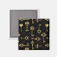 Seamless pattern of antique, gold and silhouette keys on black background.