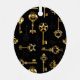 Seamless pattern of antique, gold and silhouette keys on black background.