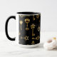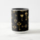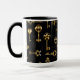 Seamless pattern of antique, gold and silhouette keys on black background.