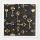 Seamless pattern of antique, gold and silhouette keys on black background.
