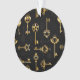 Seamless pattern of antique, gold and silhouette keys on black background.