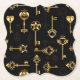 Seamless pattern of antique, gold and silhouette keys on black background.