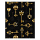 Seamless pattern of antique, gold and silhouette keys on black background.
