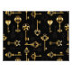 Seamless pattern of antique, gold and silhouette keys on black background.