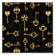 Seamless pattern of antique, gold and silhouette keys on black background.