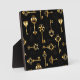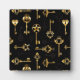 Seamless pattern of antique, gold and silhouette keys on black background.