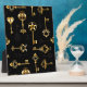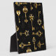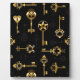 Seamless pattern of antique, gold and silhouette keys on black background.