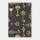 Seamless pattern of antique, gold and silhouette keys on black background.