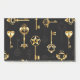 Seamless pattern of antique, gold and silhouette keys on black background.