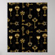 Seamless pattern of antique, gold and silhouette keys on black background.