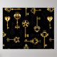 Seamless pattern of antique, gold and silhouette keys on black background.
