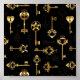 Seamless pattern of antique, gold and silhouette keys on black background.