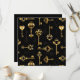 Seamless pattern of antique, gold and silhouette keys on black background.