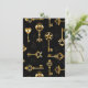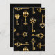Seamless pattern of antique, gold and silhouette keys on black background.