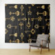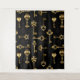 Seamless pattern of antique, gold and silhouette keys on black background.