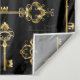 Seamless pattern of antique, gold and silhouette keys on black background.