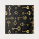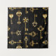 Seamless pattern of antique, gold and silhouette keys on black background.
