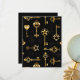 Seamless pattern of antique, gold and silhouette keys on black background.