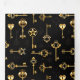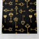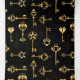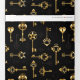 Seamless pattern of antique, gold and silhouette keys on black background.