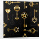 Seamless pattern of antique, gold and silhouette keys on black background.