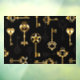 Seamless pattern of antique, gold and silhouette keys on black background.