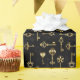 Seamless pattern of antique, gold and silhouette keys on black background.