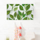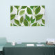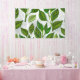 Seamless pattern of green patterned tea leaves and sprouts on a light background. Tea design.