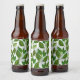 Seamless Pattern with Green Tea Leaves Beer Bottle Label