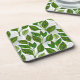 Seamless pattern of green patterned tea leaves and sprouts on a light background. Tea design.