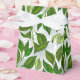 Seamless pattern of green patterned tea leaves and sprouts on a light background. Tea design.