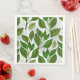 Seamless pattern of green patterned tea leaves and sprouts on a light background. Tea design.