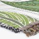 Seamless pattern of green patterned tea leaves and sprouts on a light background. Tea design.